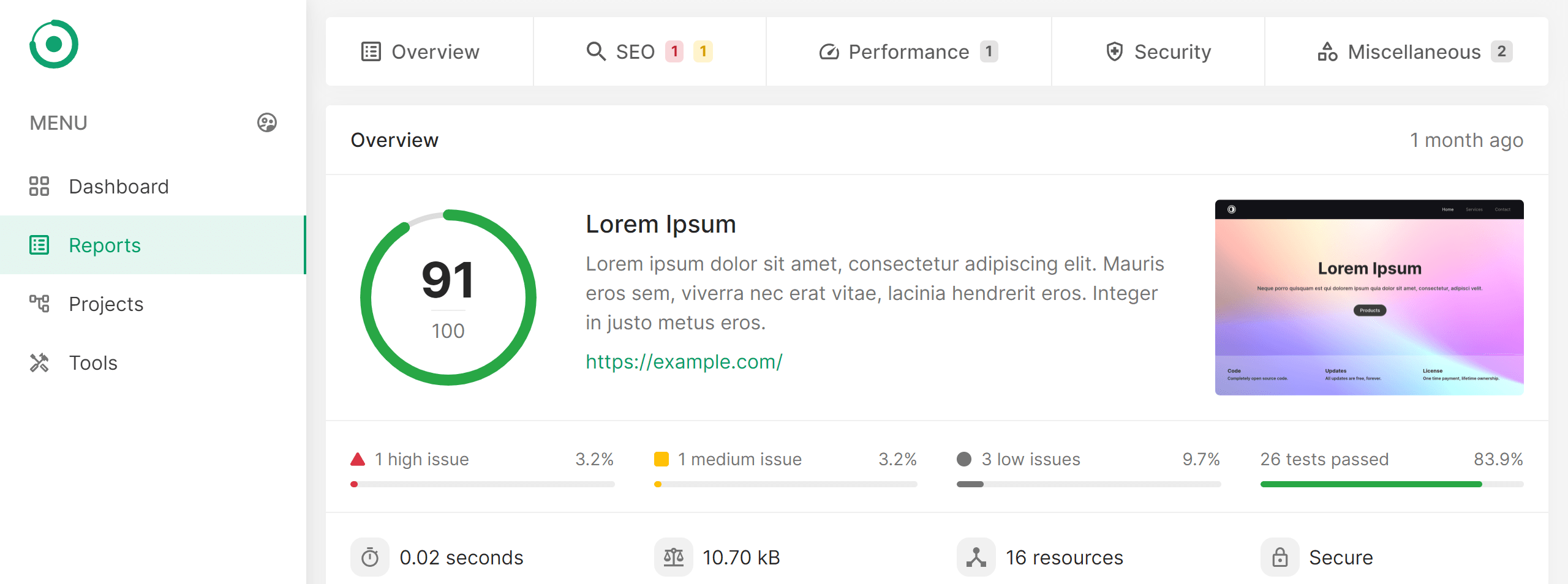 Umfassende Plattform zur einfachen Verwaltung Ihrer SEO-Berichte, -Projekte und -Tools.